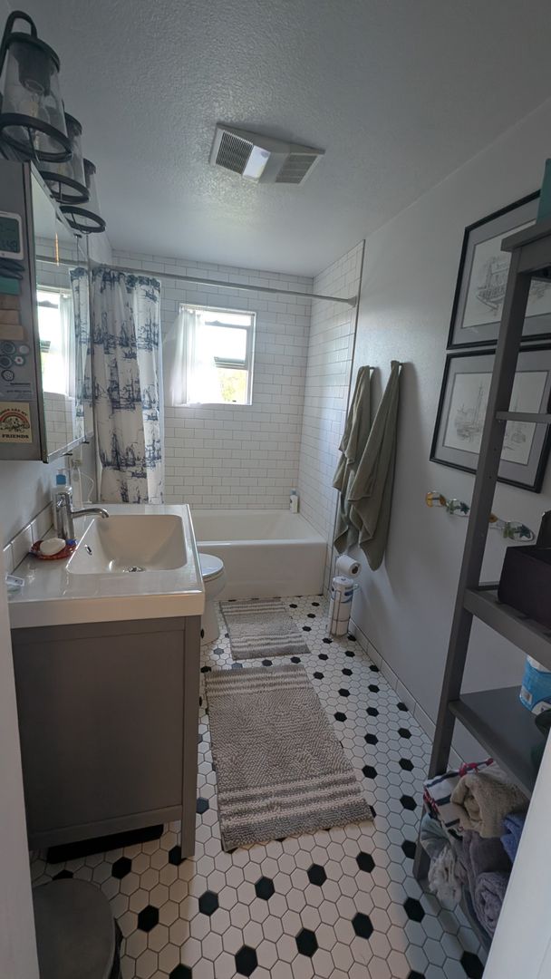 Our Western-Coastal Shabby Chic house says home when you step inside! The house has an open floor plan, large farm-style dining table, retro 50’s kitchen, and subway tile full bath. If you add the view of the mountain range and the lake , you couldn’t ask for more in a temporary home. The house is 2-3 blocks from three lakeside public parks, and the same to downtown and all the amenities it offers. The hospital is about 12 blocks away and one of two grocery stores is 8 blocks from the house.